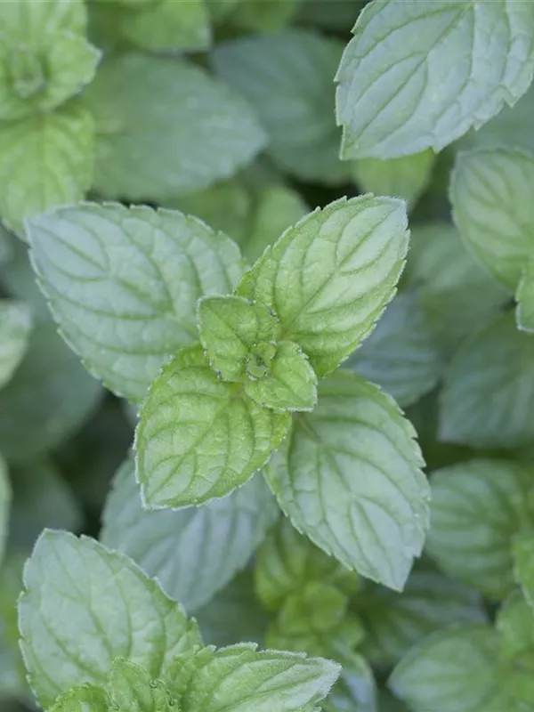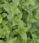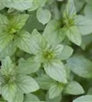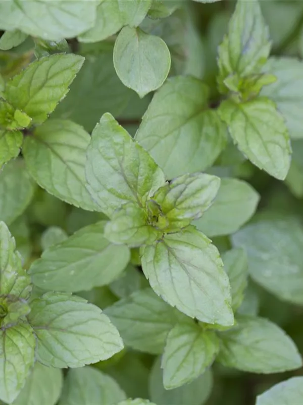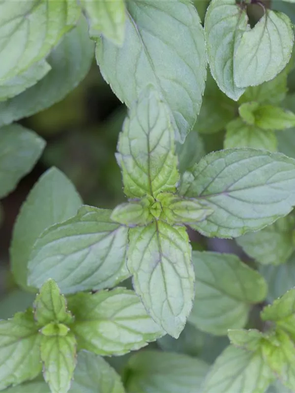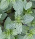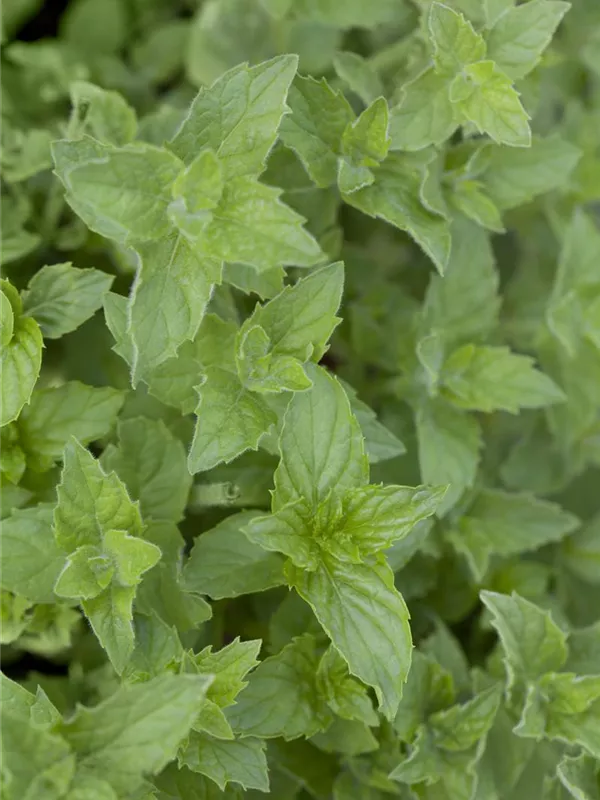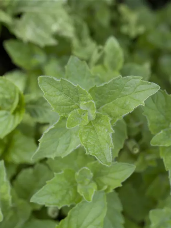Zum Verzehr geeignet. Die mittelgrünen, gezähnten Blätter sind eiförmig und überzeugen mit erfrischendem Geschmack.