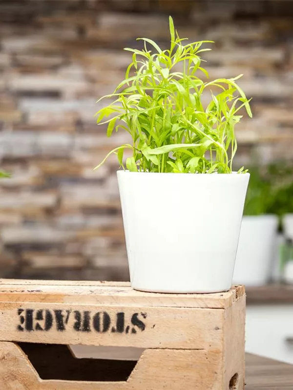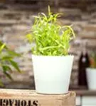 Zum Verzehr geeignet. Die mittelgrünen Blätter sind gefingert und überzeugen mit würzigem Geschmack.