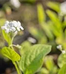 Omphalodes verna 'Alba' bildet in Trauben angeordnete, weiße Blüten ab März.