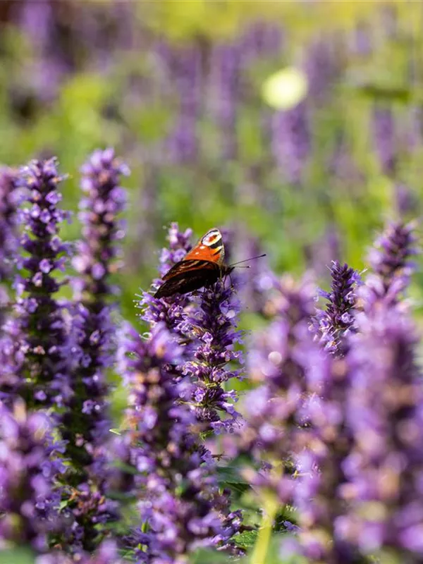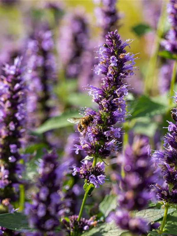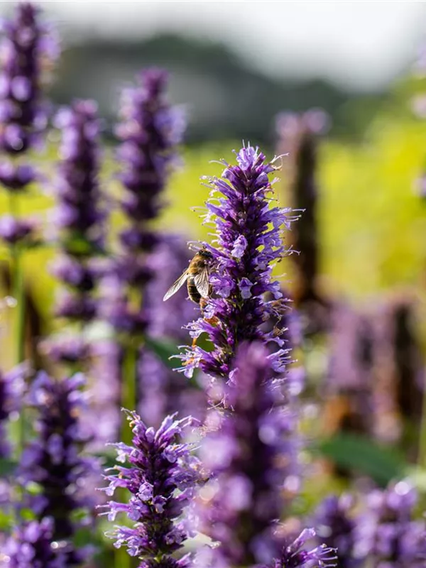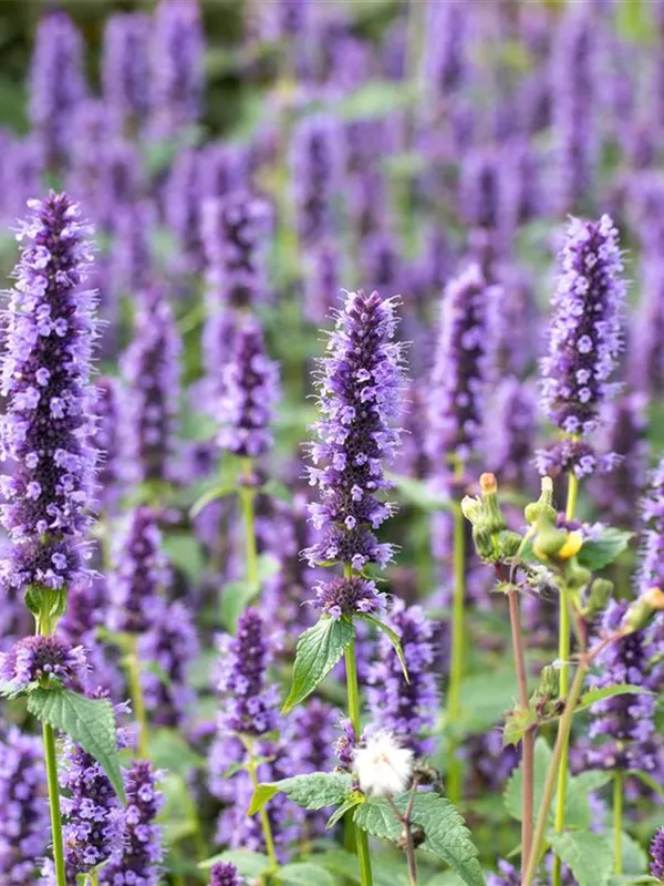 Agastache rugosa 'Black Adder'® bildet lippenförmige, in Ähren angeordnete, blauviolette Blüten ab Juli. Diese verströmen einen angenehmen Duft.