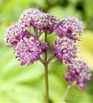 Astrantia major 'Primadonna' bildet sternförmige, in Dolden angeordnete, purpurrote Blüten ab Juni. Bei richtiger Pflege Nachblüte im September.