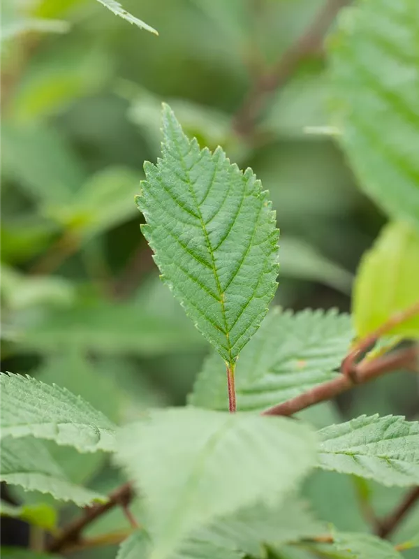 Die sommergrünen Blätter der Europäische Weißulme sind mittelgrün, wechselständig, doppelt gesägt. Diese sind etwa 10 - 12 cm groß. Europäische Weißulme zeigt sich leuchtend gelb im Herbst.