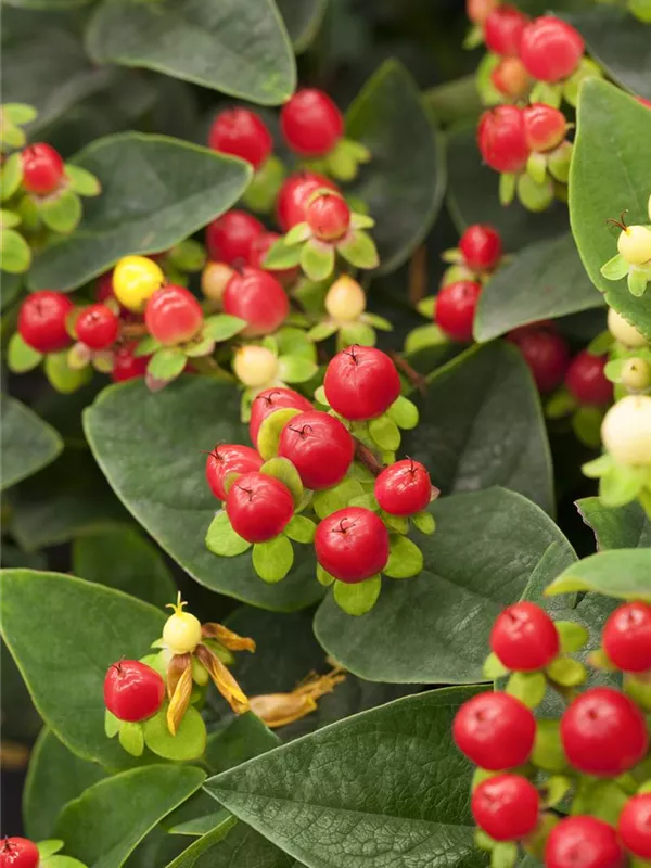 Besonders dekorativ sind die roten Früchte von Hypericum inodorum 'Miracle Attraction'®. Diese erscheinen ab September.