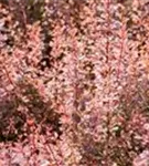 Berberitze 'Rose Glow' ist ein buschig, dicht und kompakt wachsender Kleinstrauch. Sie erreicht gewöhnlich eine Höhe von 0,8 - 1,3 m und wird ca. 0,8 - 1,3 m breit. In der Regel wächst sie 10 - 15 cm pro Jahr.