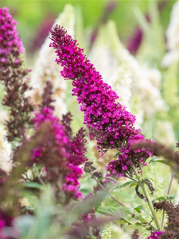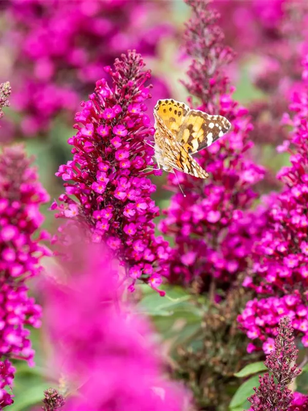Die magentafarbenen Blüten des Schmetterlingsflieder BUZZ™ 'Magenta' erscheinen in Rispen von Juli bis September. Diese sind stark duftend.