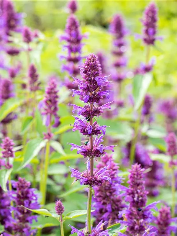 Agastache rugosa 'Blue Boa' bildet lippenförmige, in Ähren angeordnete, blauviolette Blüten ab Juli. Diese verströmen einen angenehmen Duft.
