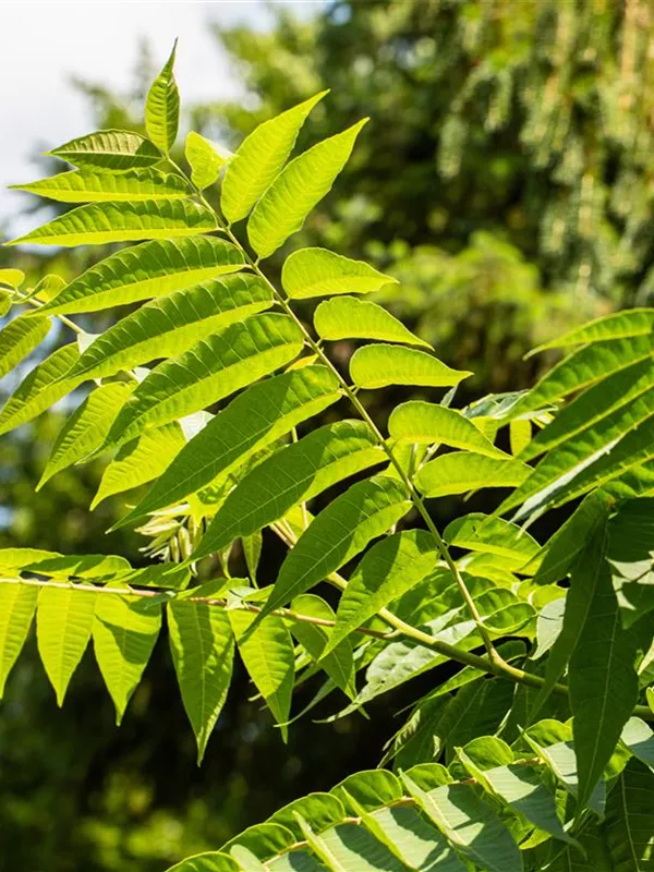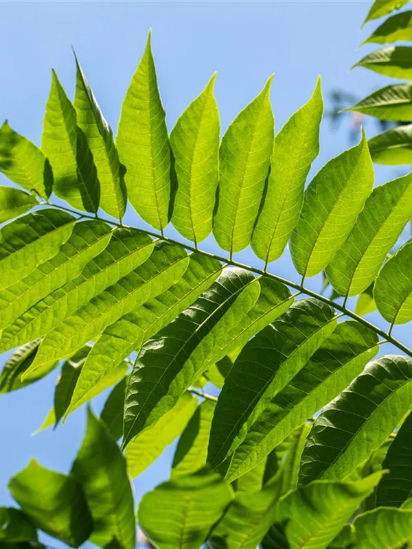 Toona sinensis kann eine Höhe von 15 - 20 m und eine Breite von 6 - 8 m erreichen.