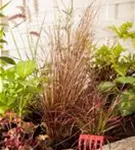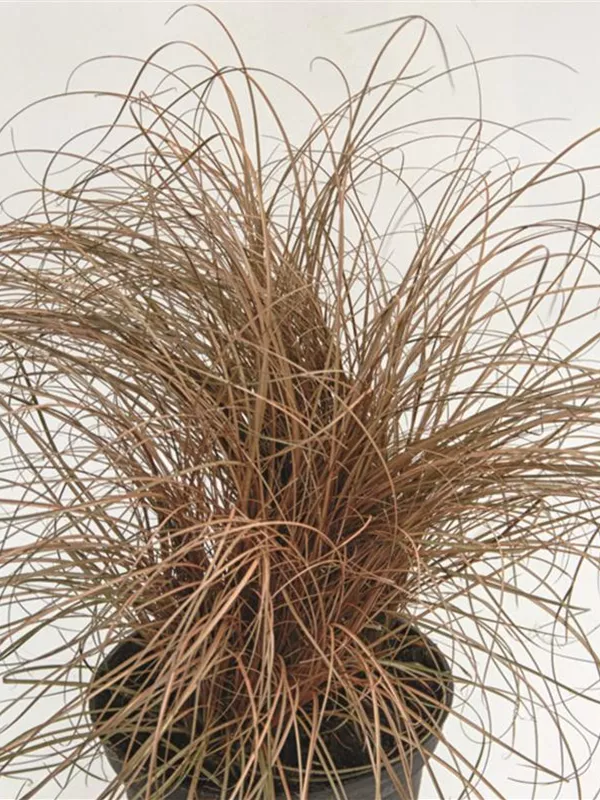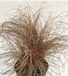 Hoher Blattschmuckwert. Die wintergrünen Blätter der Gartensegge 'Red Rooster' sind braun, rot-braun, matt, ganzrandig.