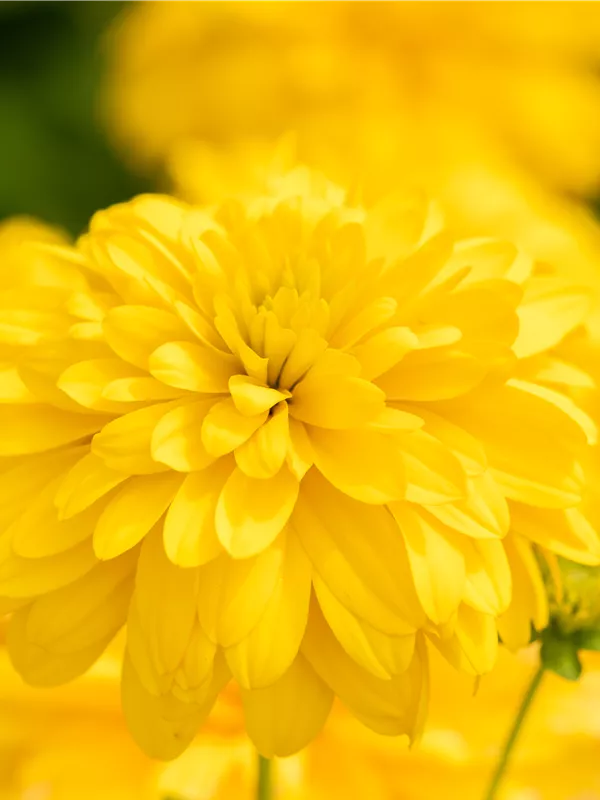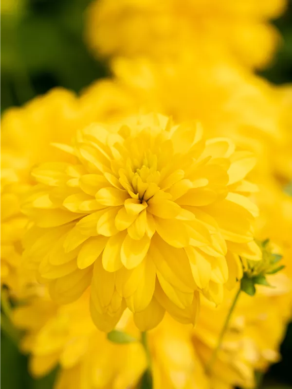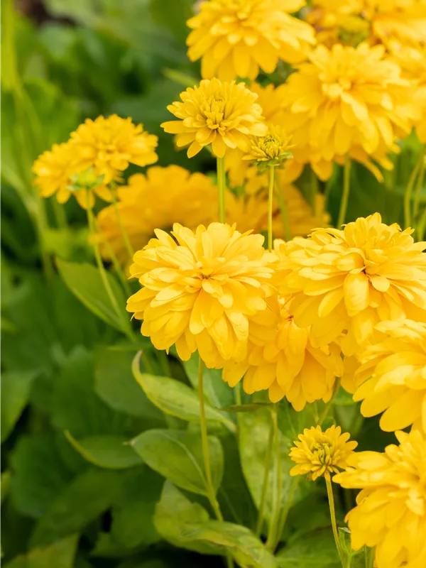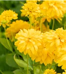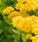 Rudbeckia laciniata 'Goldball' bildet gefüllte, hellgelbe Blüten ab August.