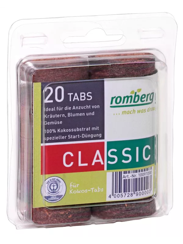 Die Kokos-Quelltabletten von Romberg sind 100% torffrei, mit Start-Düngung und vorgebohrtem Steckloch versehen und punkten mit leichter Durchwurzelung.