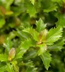 Die immergrünen Blätter des Ilexes 'Little Rascal'® sind dunkelgrün, lanzettlich.