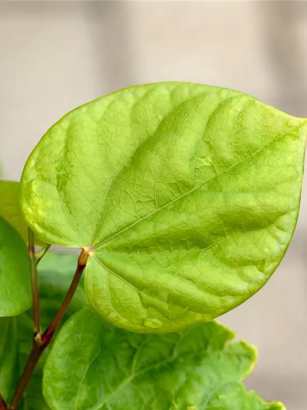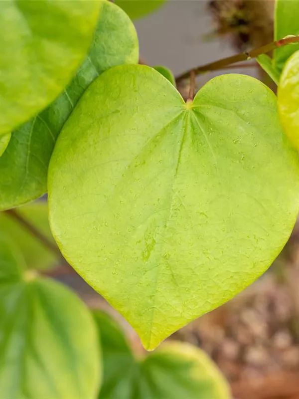 Die sommergrünen Blätter des Judasbaums 'Avondale' sind dunkelgrün, herzförmig. Judasbaum 'Avondale' zeigt sich leuchtend goldgelb im Herbst.