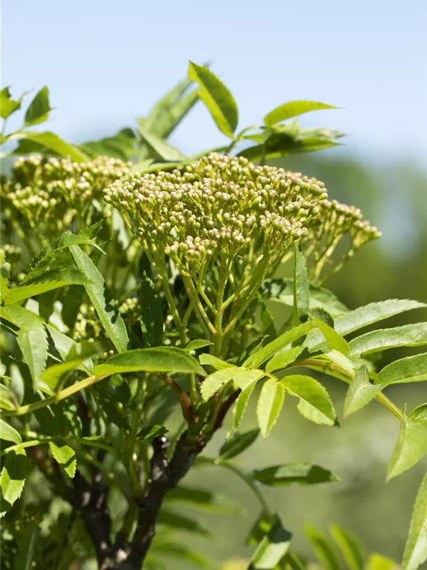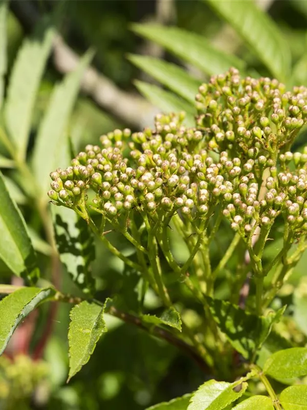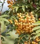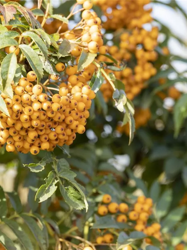 Besonders dekorativ sind die orangegelben, runden Früchte von Sorbus aucuparia 'Autumn Spire'®. Diese erscheinen ab August.
