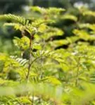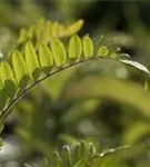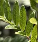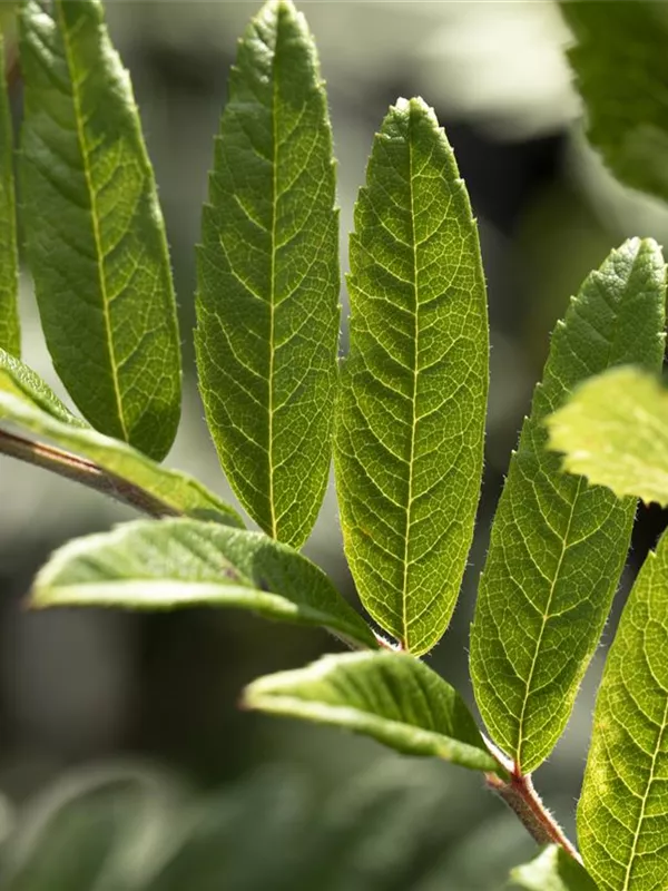 Die sommergrünen Blätter der Eberesche 'Joseph Rock' sind mittelgrün, gefiedert, wechselständig. Eberesche 'Joseph Rock' zeigt sich leuchtend orange im Herbst.