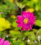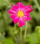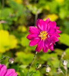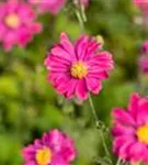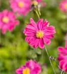 Die rosaroten, schalenförmigen Blüten sind halbgefüllt und erscheinen von August bis September.