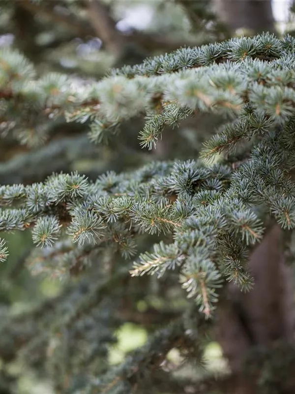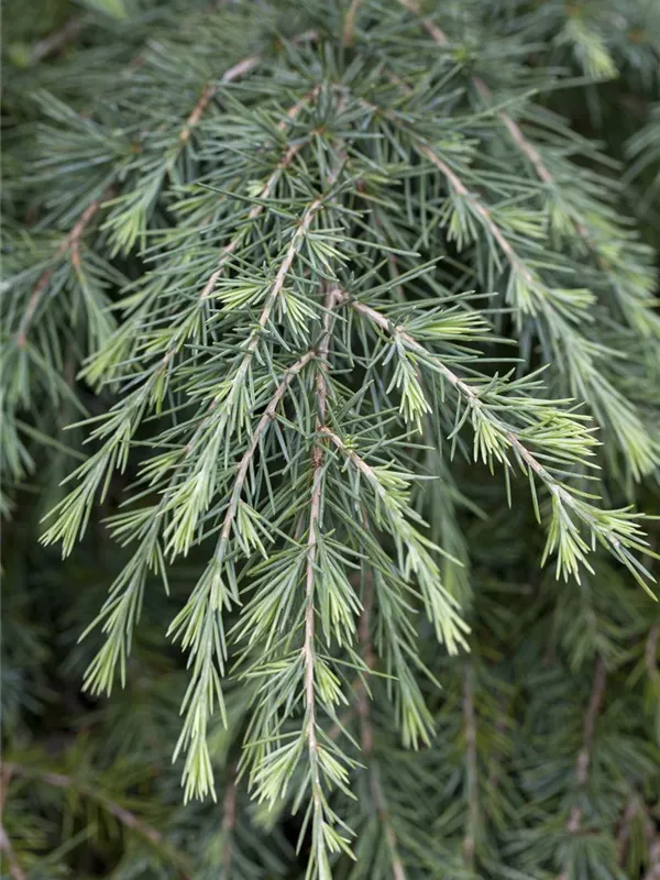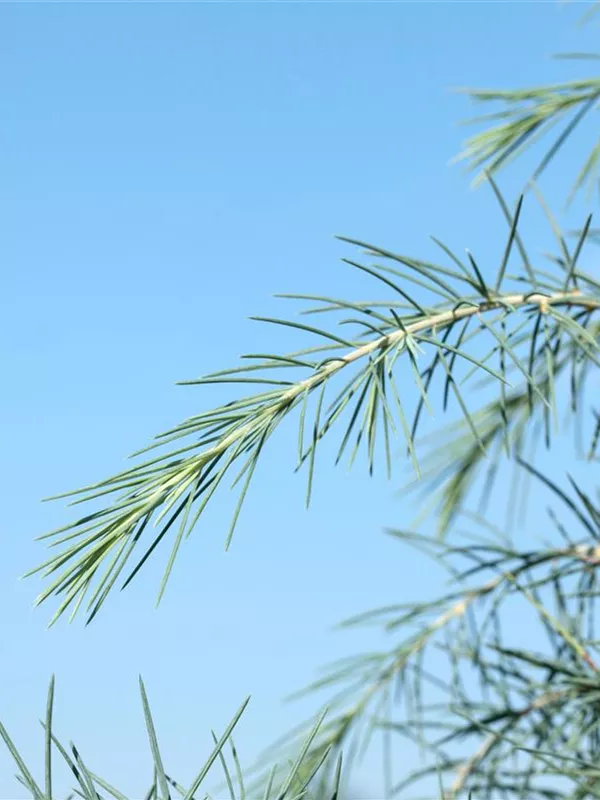 Die Himalaya-Zeder ist immergrün. Ihre Nadeln sind blau-grün, weich.