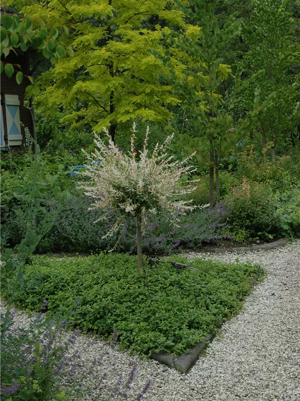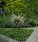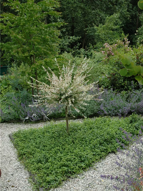 Die Harlekin-Weide 'Hakuro Nishiki', Stamm setzt schöne Akzente gemeinsam mit: