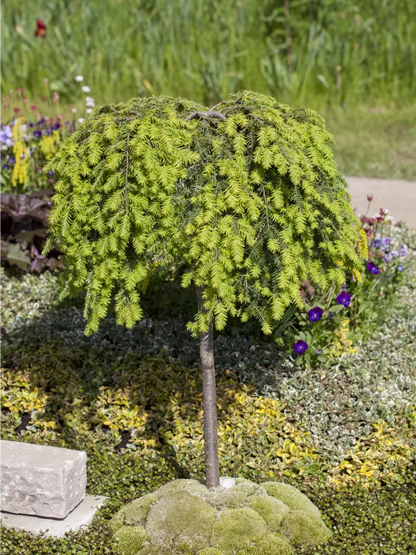 - Diese Pflanze ist schneedruckgefährdet. In schneereichen Gegenden empfiehlt es sich daher, die Zweige mit einer Schnur zu umwickeln. Andernfalls können diese auseinander klappen und sich möglicher Weise nicht mehr vollständig erholen. Wenn die Schneesaison vorbei ist, müssen die Schnüre natürlich wieder entfernt werden.