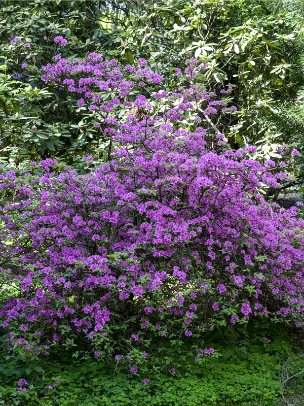 Der Vorfrühlingsrhododendron 'Praecox' weist eine gute Frosthärte auf.
