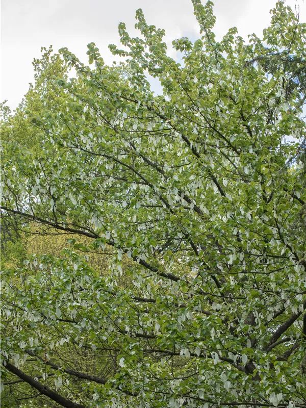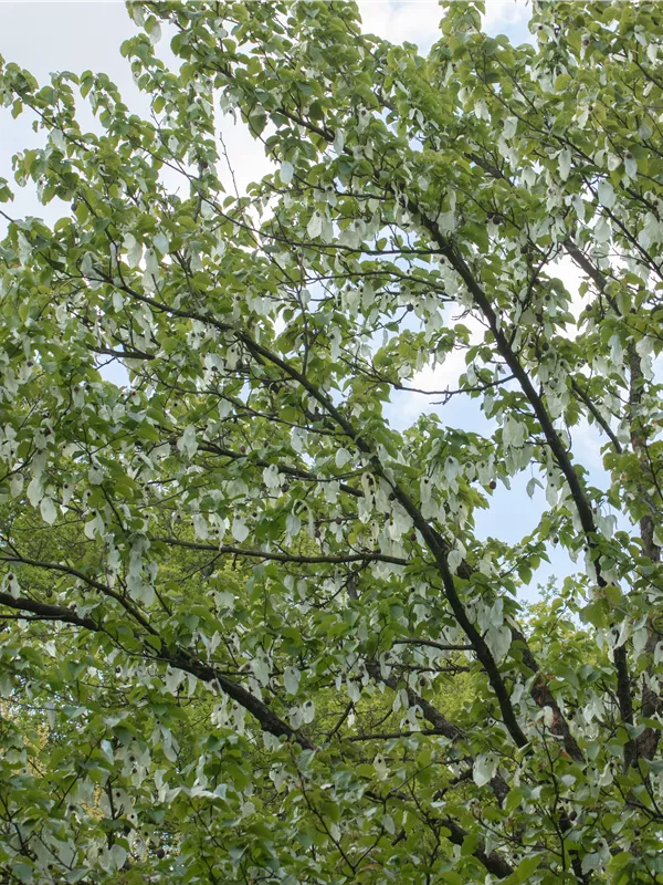 Hoher Blattschmuckwert. Die sommergrünen Blätter des Taubenbaums sind mittelgrün, eiförmig, wechselständig, gezähnt. Diese sind etwa 8 - 14 cm groß.