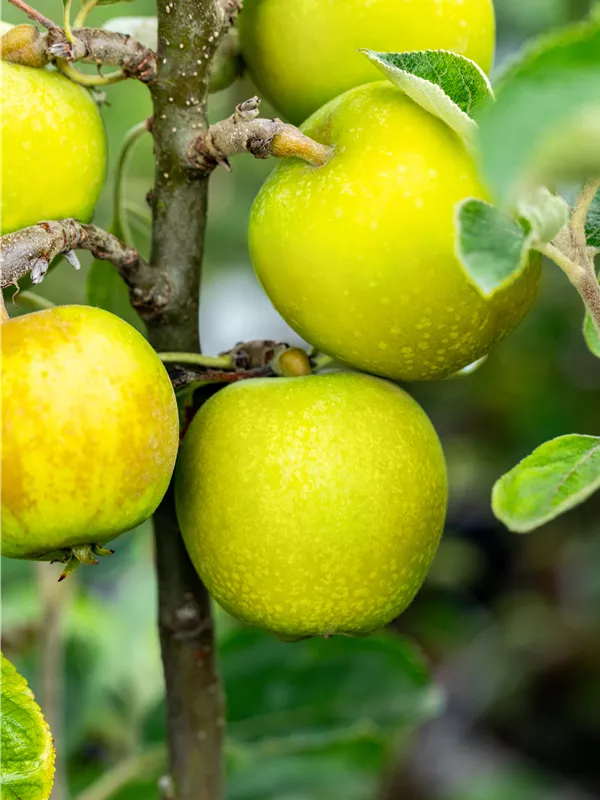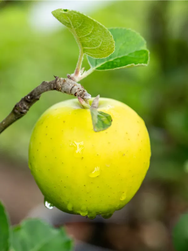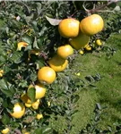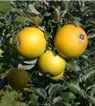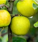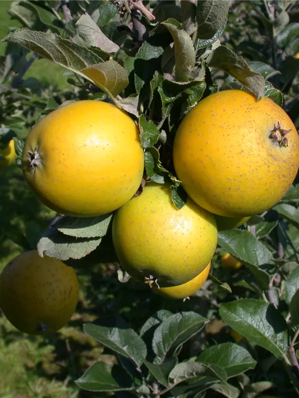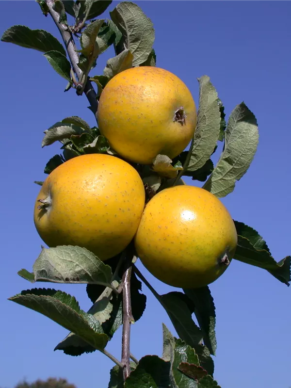 Malus domestica 'Ananas-Renette' bildet gelbe Früchte.