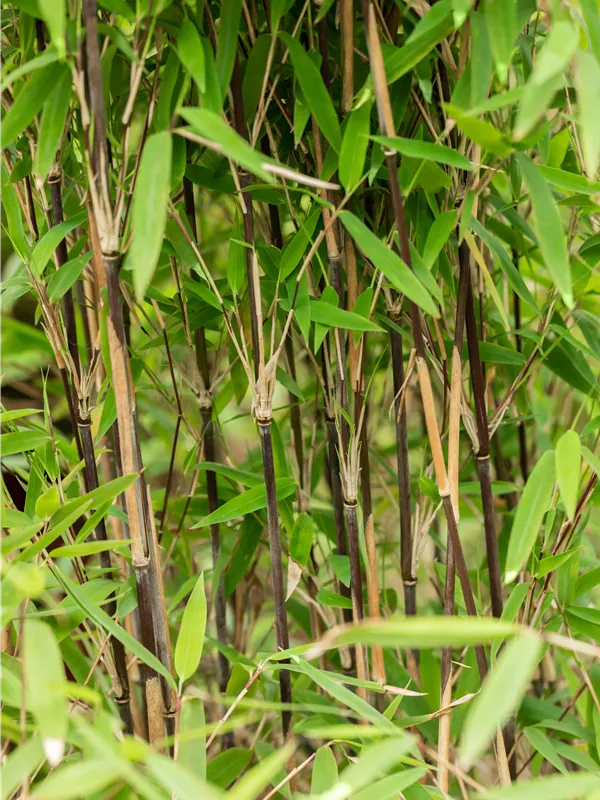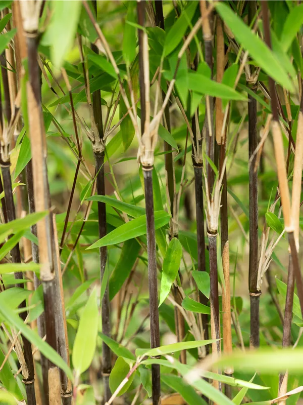 Bambus 'Volcano' zeichnet sich durch seine schwarz-roten Halme aus.