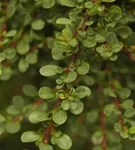 Die immergrünen Blätter der Immergrüne Kissenmispel sind dunkelgrün, eiförmig. Immergrüne Kissenmispel zeigt sich leuchtend dunkelrot im Herbst.