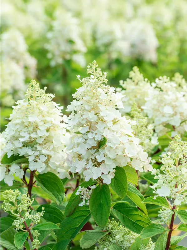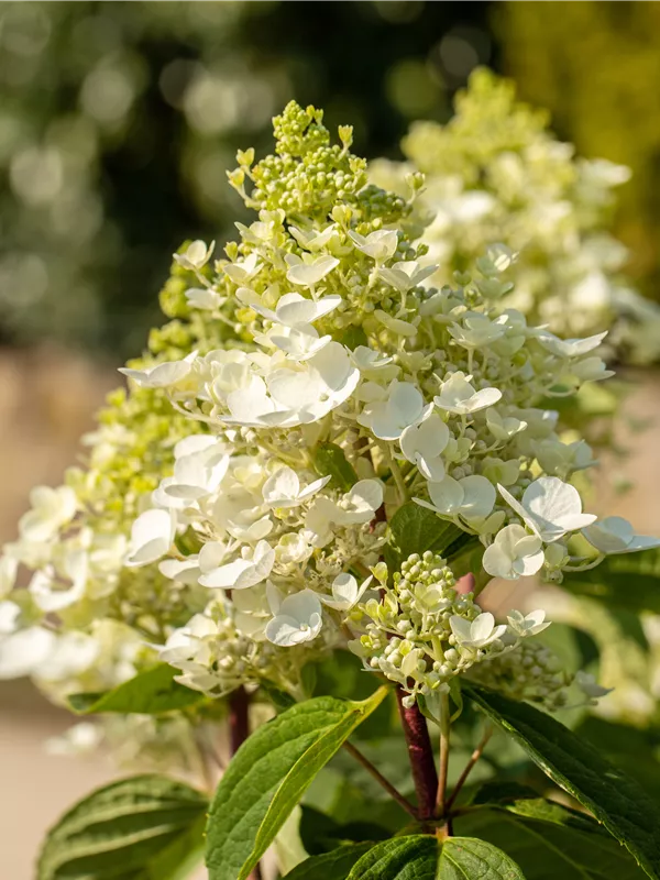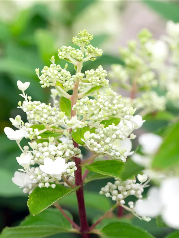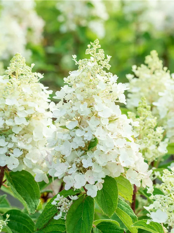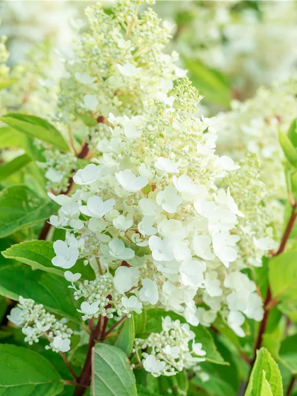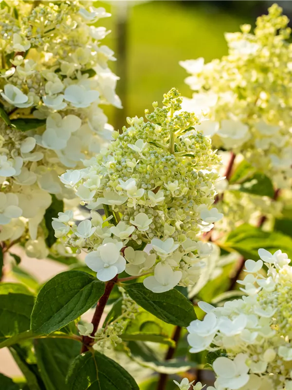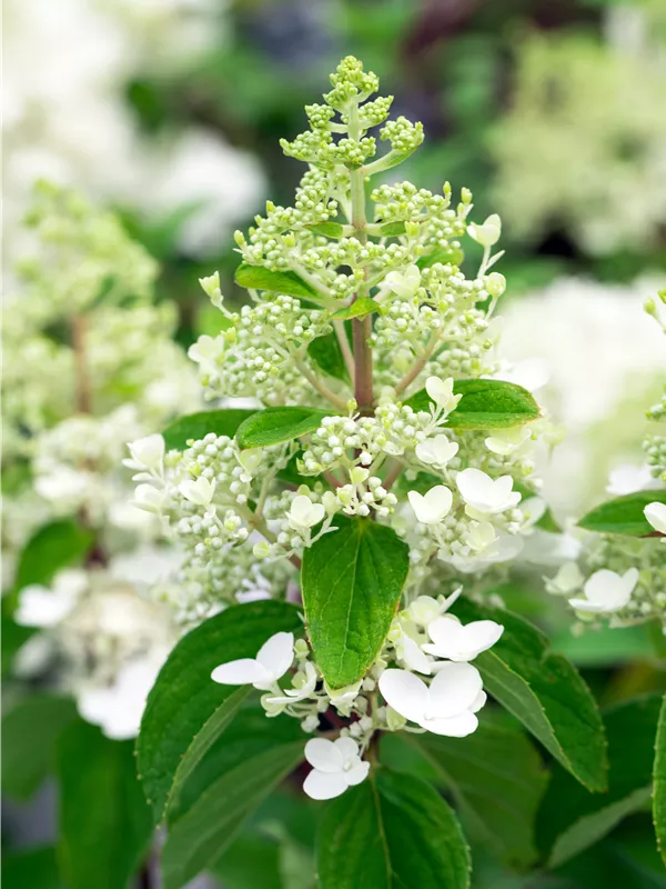 Die cremeweißen Blüten der Rispenhortensie 'Baby Lace' erscheinen in Rispen von Juli bis September. Diese sind angenehm duftend.