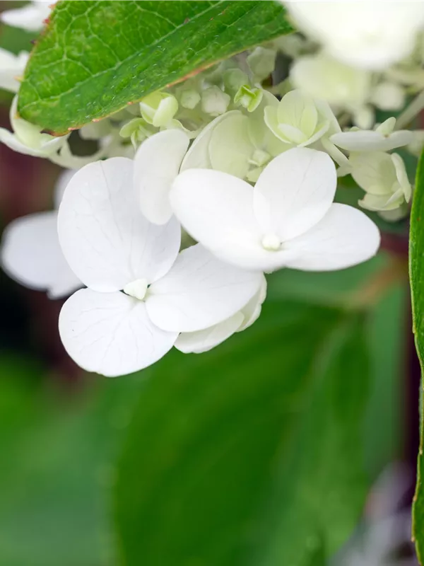 Die sommergrünen Blätter der Rispenhortensie 'Baby Lace' sind dunkelgrün, lanzettlich.