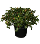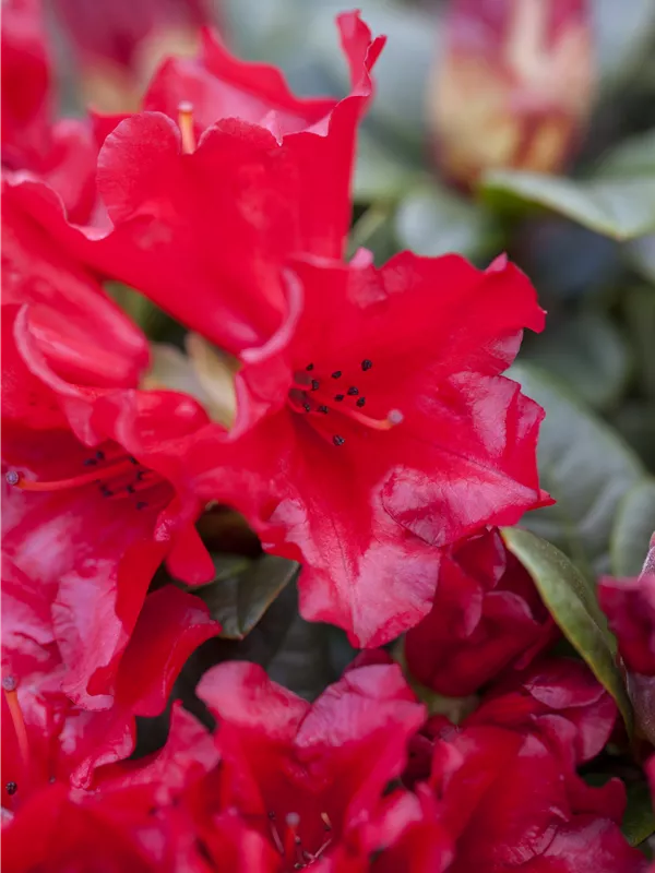 Der Zwergrhododendron 'Scarlet Wonder' ist immergrün und trägt dunkelgrüne eiförmige Blätter.