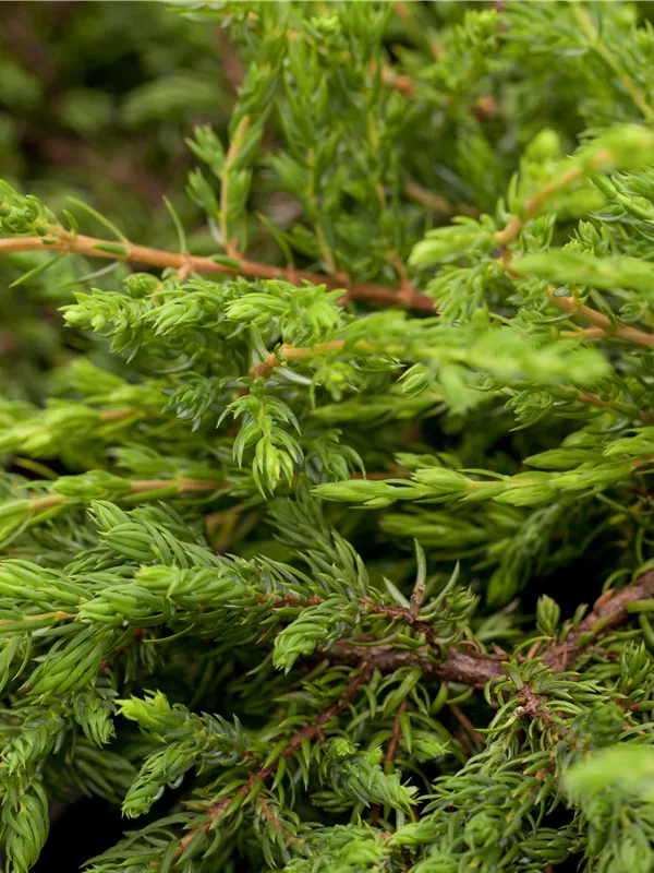 Der Kriechende Wacholder 'Repanda' ist immergrün. Seine Nadeln sind dunkelgrün, weich.