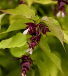 Die dunkelrot-weißen Blüten der Schönen Leycesterie 'Little Lanterns'® erscheinen in Rispen von Juli bis August.