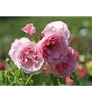 Die hellrosafarbenen, schalenförmigen Blüten sind gefüllt und erscheinen von Juni bis Oktober. Diese werden etwa 6 - 8 cm groß und sind leicht duftend.