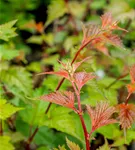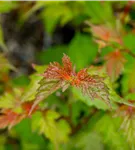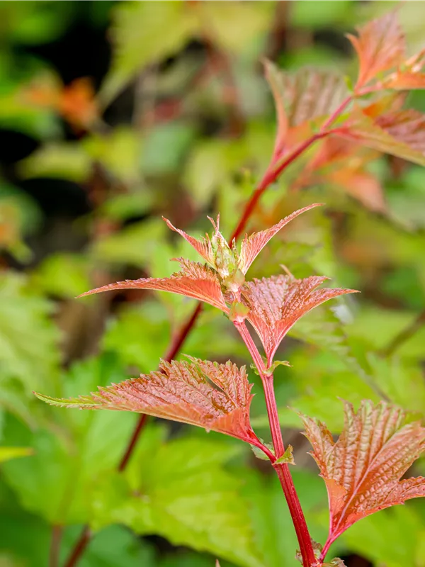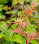 Die sommergrünen Blätter der Rote Traubenspiere sind mittelgrün, eiförmig. Rote Traubenspiere zeigt sich leuchtend gelb im Herbst.