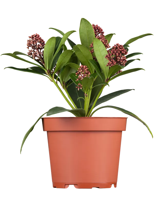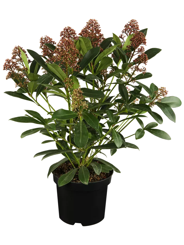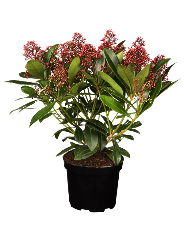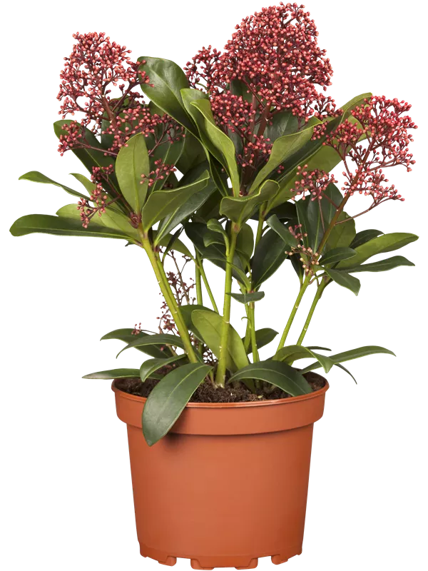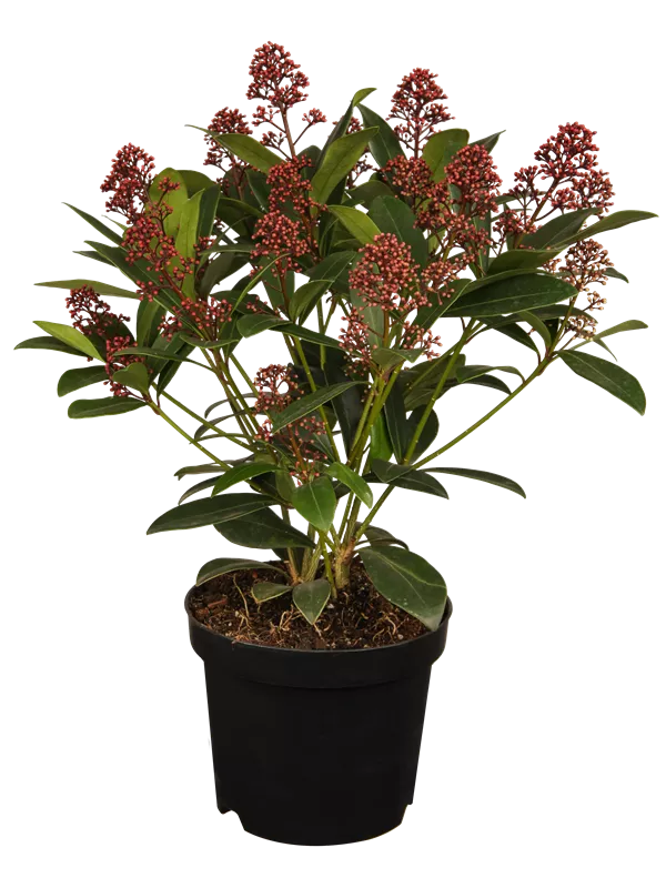 Skimmia japonica 'Rubella' ist ein Flachwurzler.