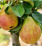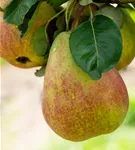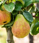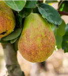 Pyrus communis 'Gerburg' bildet gelb-grüne, grün-rote Früchte.