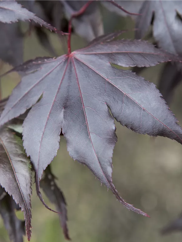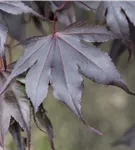 Hoher Blattschmuckwert. Die sommergrünen Blätter des Fächerahorns 'Fireglow' sind purpurrot, gegenständig, gesägt, gelappt. Diese sind etwa 5 - 9 cm groß. Roter, früher Austrieb. Fächerahorn 'Fireglow' zeigt sich leuchtend scharlachrot im Herbst.