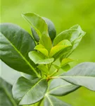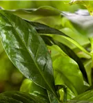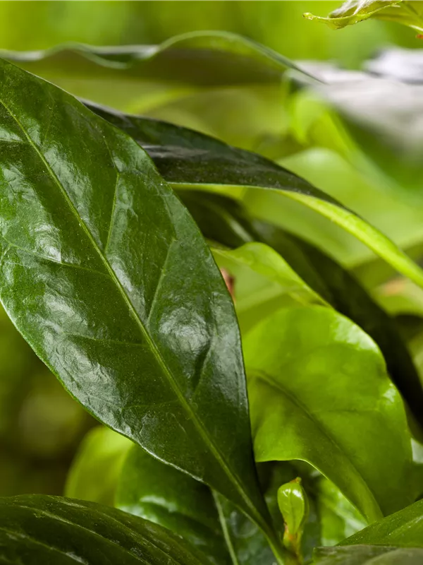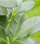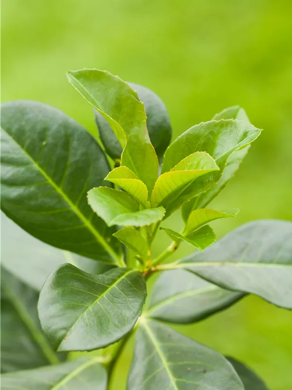 Die immergrünen Blätter der Lorbeerkirsche sind dunkelgrün, eiförmig, glänzend, wechselständig.