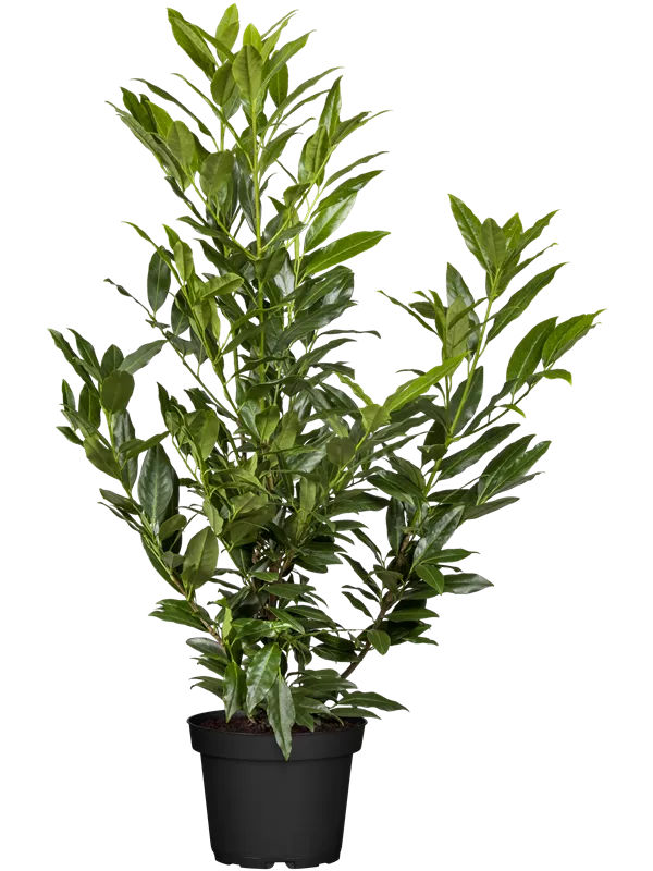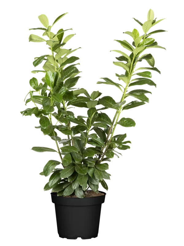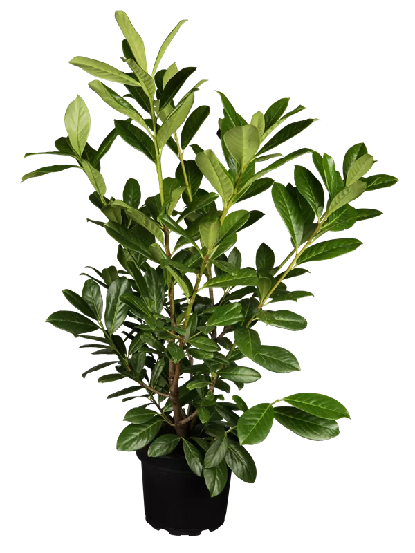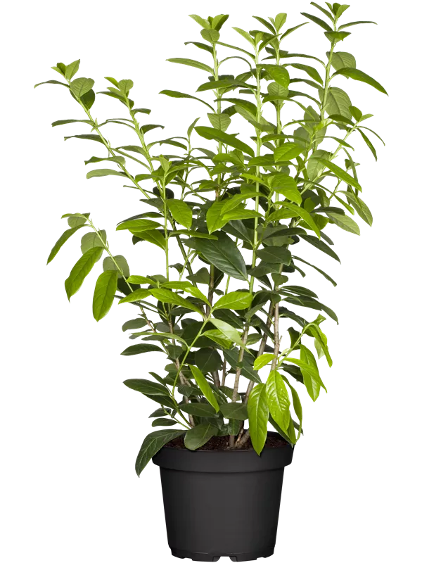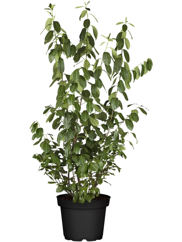 Lorbeerkirsche ist ein Großstrauch. Sie erreicht gewöhnlich eine Höhe von 3 - 5 m und wird ca. 2 - 4 m breit.