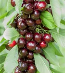 Die roten bis dunkelroten Früchte haben einen süßen, aromatischen Geschmack. Reifezeit ab Mitte Juli.