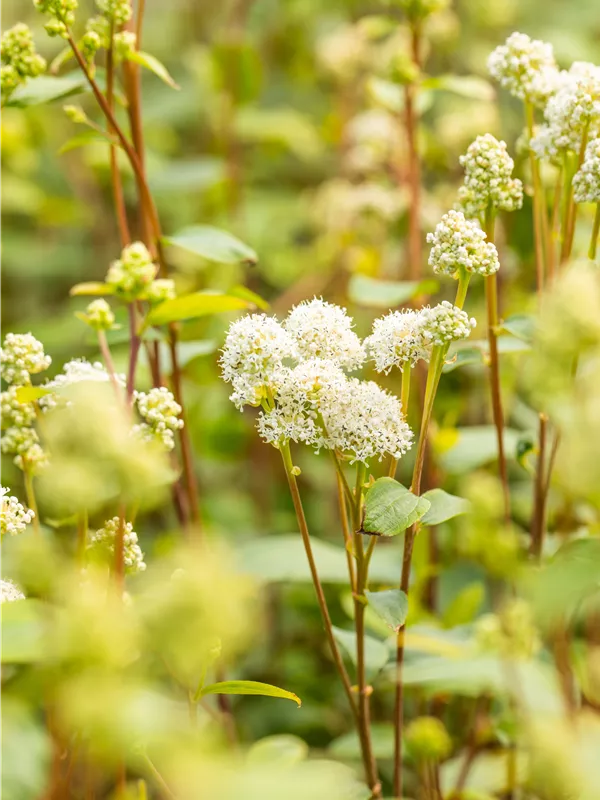 Die weißen Blüten erscheinen von Mai bis Juli. Diese sind angenehm duftend.