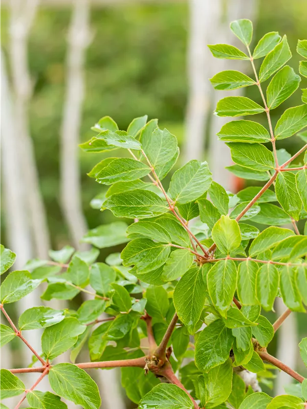 Aralia elata ist ein Flachwurzler und bildet, je nach Boden, ausläuferbildende Wurzeln.