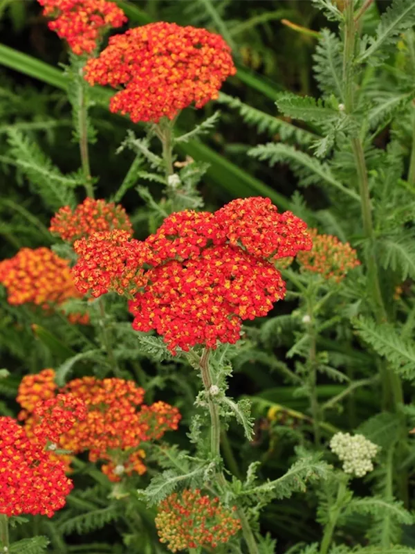 Achillea millefolium 'Walter Funcke' bildet in Dolden angeordnete, orange-rote Blüten ab Juni. Diese verströmen einen angenehmen Duft. Bei richtiger Pflege Nachblüte im September.