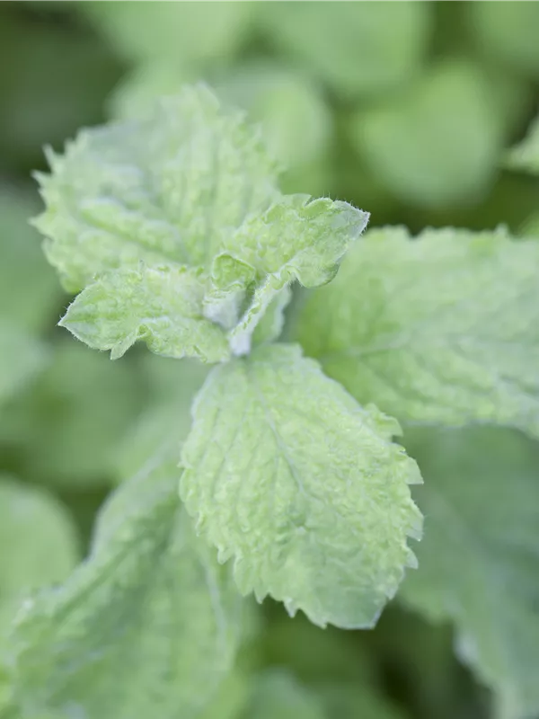 Zum Verzehr geeignet. Die mittelgrünen, gezähnten Blätter sind eiförmig und überzeugen mit erfrischendem, aromatischem Geschmack.