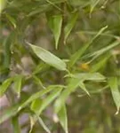 Die immergrünen Blätter des Grünen Bambus sind dunkelgrün, lanzettlich, glänzend.