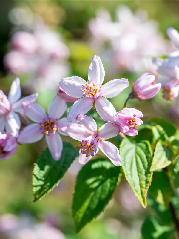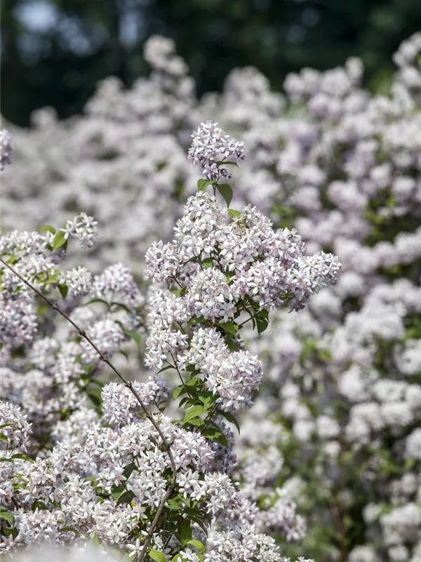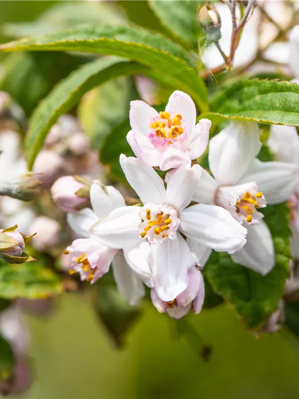 Die Rosendeutzie 'Mont Rose' ist sommergrün.