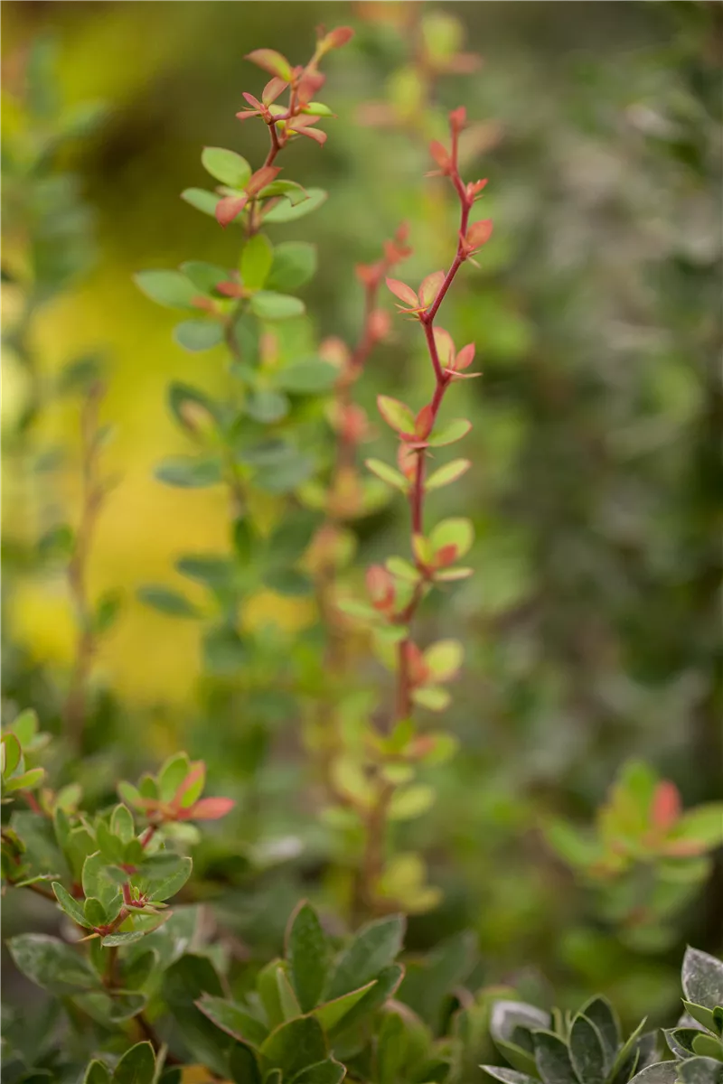 Die Triebe von Berberis buxifolia 'Nana' sind bedornt, rot-braun.