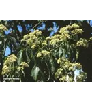 Die weißen Blüten der Samthaarige Stinkesche erscheinen in Rispen im August. Diese sind angenehm duftend.