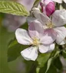 Malus domestica 'Pinova'(s) bildet hellrosafarbene Blüten ab April.
