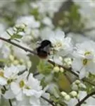 Die weißen Blüten der Kleinen Prunkspiere 'The Bride' erscheinen in Trauben von Mai bis Juni. Diese werden etwa 3 - 4 cm groß und sind leicht duftend.